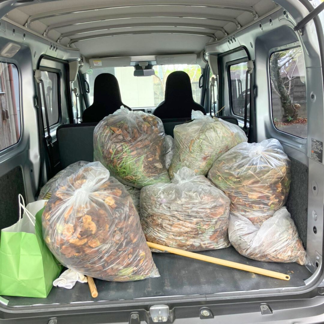 当日はスタッフが協力し合いながら、隅々まで落ち葉やごみを集め、大きな袋に5つ以上の量となりました。