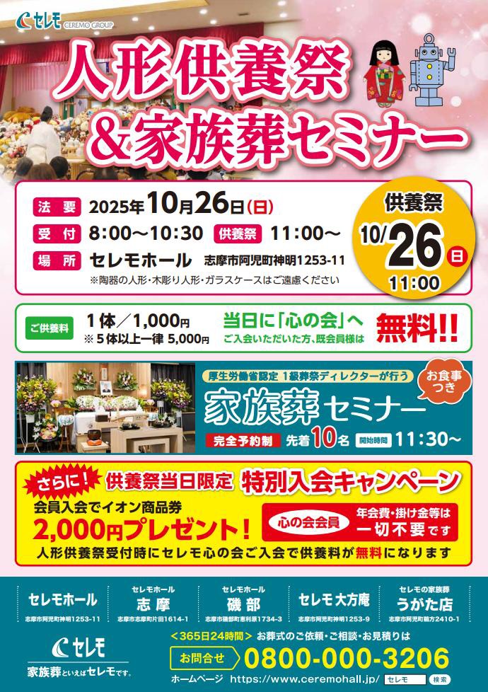 セレモホール 人形供養祭&家族葬セミナー ※一部要予約